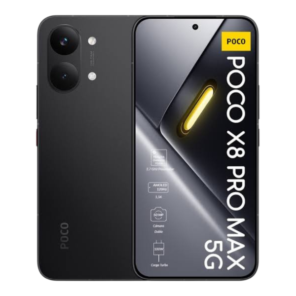 El POCO X8 Pro Max es un dispositivo de gama alta/media-alta lanzado en abril de 2026, destacando por su masiva batería de 8500 mAh con carga rápida de 100 W, el potente procesador MediaTek Dimensity 9500s (3nm), y una pantalla AMOLED de 6.83" a 120Hz con 3500 nits de brillo máximo. Ofrece 12 GB de RAM, hasta 512 GB de almacenamiento UFS 4.1 y cámara principal de 50 MP.